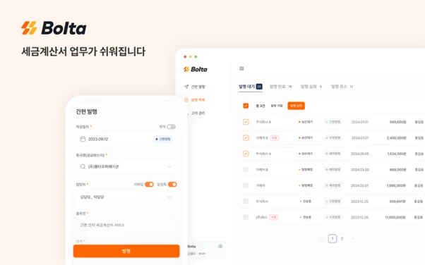 볼타코퍼레이션은 전자세금계산서 발행, 관리를 간소화하는 서비스인 '볼타'를 제공하고 있다며 회계세무법인, 중소기업, 스타트업, 개인사업자 등 400개 이상의 고객이 볼타를 통해 시간 낭비를 줄이고 업무를 효율화하고 있다고 설명했다.