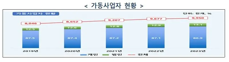3040세대의 신규 창업이 늘고, 법인사업자보다 개인사업자의 비중이 월등히 높아서다. 실제 지난해 신규 사업자 127만 6000개 중 개인사업자가 114만7000개(89.9%)에 달한다.