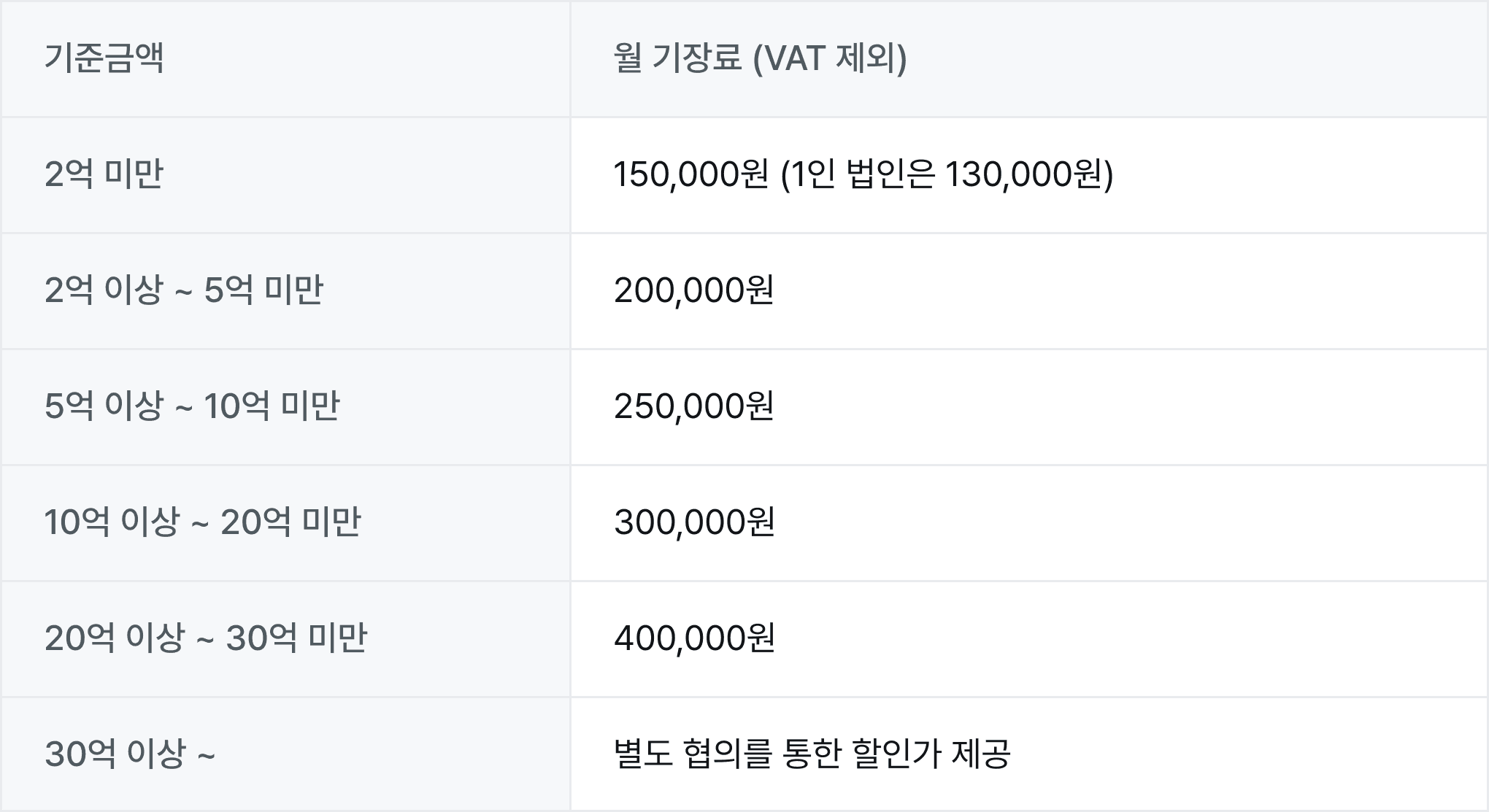 기장 업무 수수료
