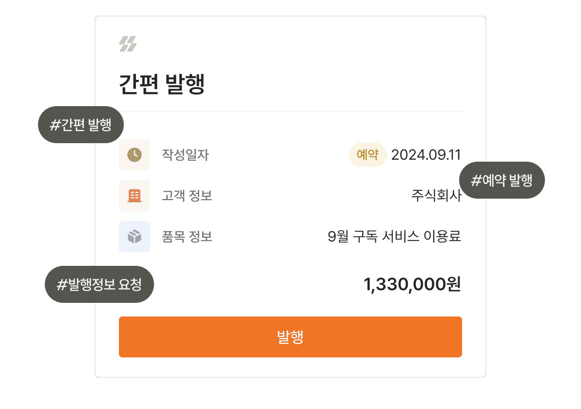 사용자 편의성을 고려하여 이전과는 다른 발행 경험을 제공하는 세금계산서 간편 서비스를 경험해 보세요.