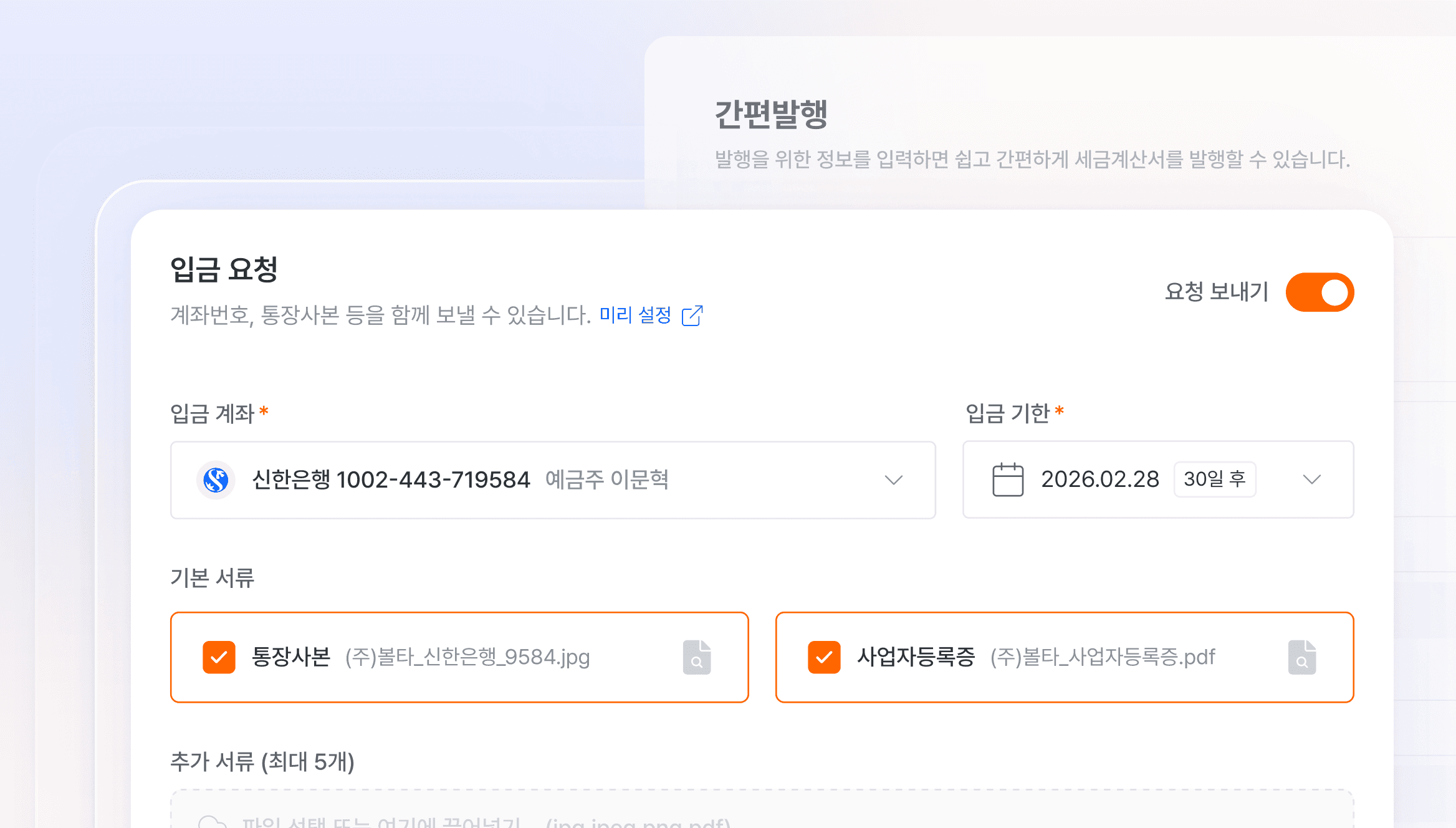 세금계산서 발행에서 입금 요청까지 한 번에